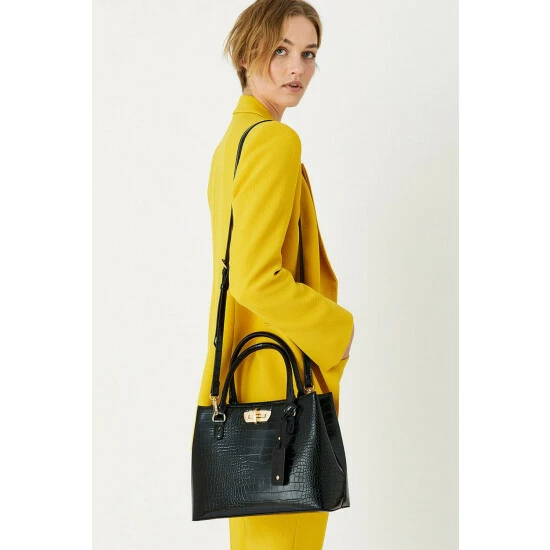 Carolina’s a chic companion for dinner, meetings and drinks. Her mid size allows you to fit in all your essentials, with two compartments and a zipped middle section for your keys and coin purse. Crafted in sturdy faux leather with a mix of mock animal textures.