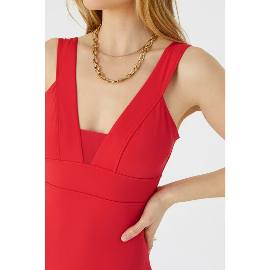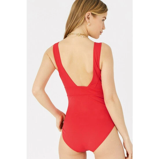 Elevate your poolside style with this swimsuit from Accessorize, featuring wide straps and a mesh insert on the plunging neckline. It’s made from firm-stretch material designed to help smooth and shape your tummy area.