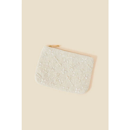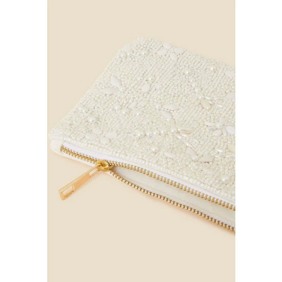 A safe and pretty place to store all your small bridal bits and bobs, this pouch is perfect for keeping your lipsticks and hair grips in one place as you get ready for the big day. Designed with hand beaded pearls, this pouch secures at the top with a zip closure.