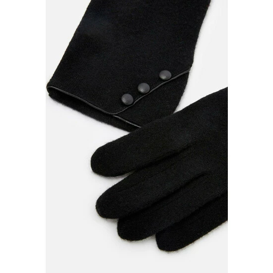These luxuriously soft gloves are knitted with wool for maximum warmth and cosiness. They feature small buttons at the side for added chic-appeal.