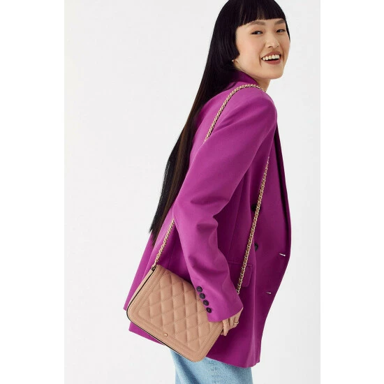 No wardrobe is complete without the quilted bag. Chryssa boasts a classic style, complete with a quilted foldover flap and magnetic closure to keep your smaller bits safe. She features a gold chain, adding a touch of shine to your look.