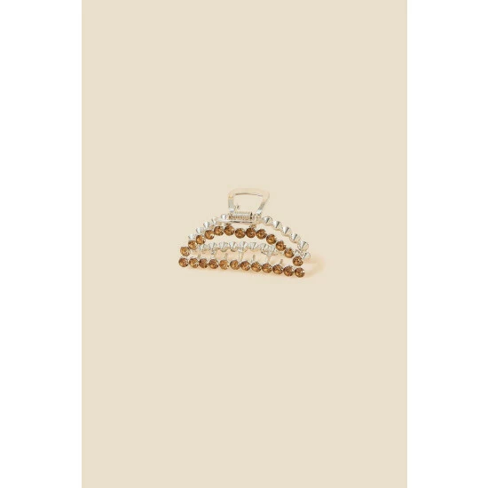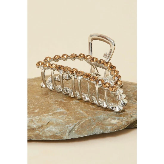 Ensure everyone in the bar sees your hairstyle with this embellished claw clip holding it together. Designed with a silver base, watch the caramel diamantes twinkle through the evening.