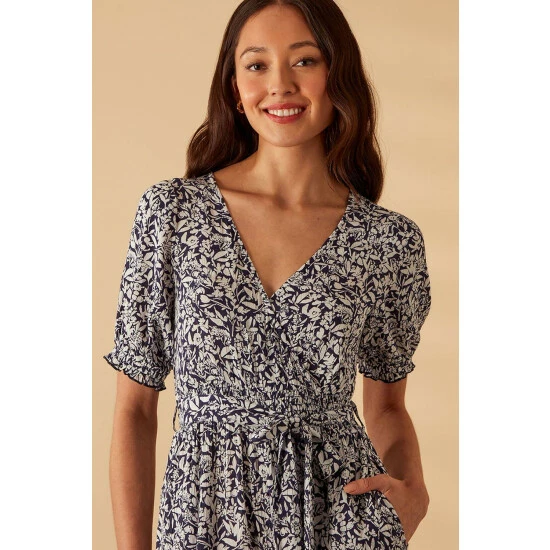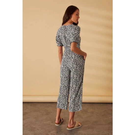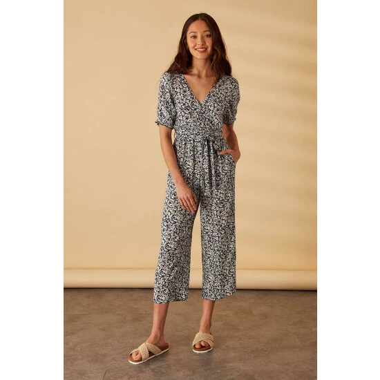 Fashioned in light, floaty fabric, this jumpsuit is the ultimate airy option for when the sun makes an appearance. Featuring a wrap bodice with cropped sleeves and a wide fit through the legs, you’ll find ditsy florals wind throughout the silhouette. Finished with frilly cuffs and a single popper over the v-neck to keep it in place as you venture out for the day.