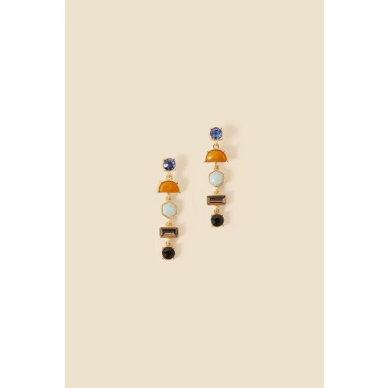 Dripping in eclectic gemstones, these earrings are designed in an earthy palette to infuse a bohemian aesthetic into your evening look. Crafted in gold-tone metal, slick your hair back into a ponytail or bun to show them off.