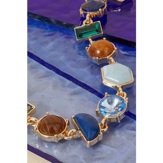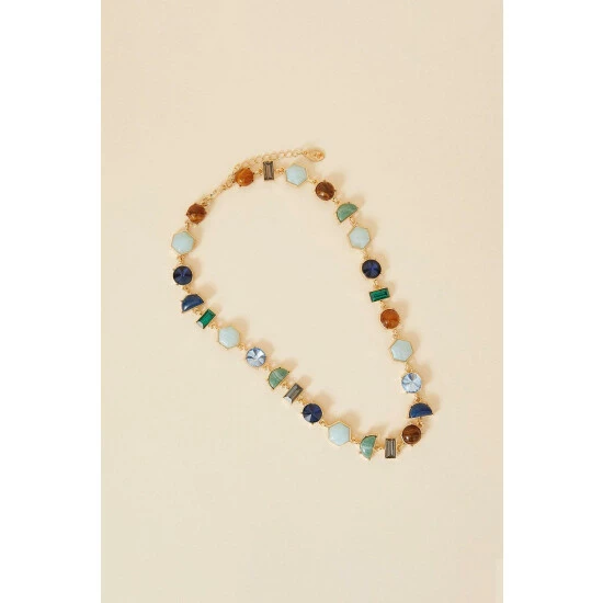 Enjoy the variation between each and every gemstone on this necklace, infusing an earthy colour palette into your evening looks. Designed in gold-tone metal, it’ll pair beautifully alongside a fine chain choker for a layered finish.