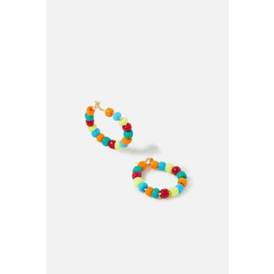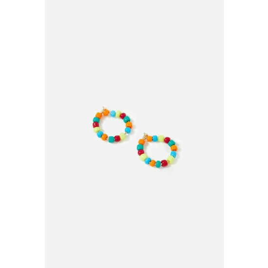 Accessorise 90s style with these earrings, featuring colourful beading threaded onto a gold-tone wire huggie hoop.