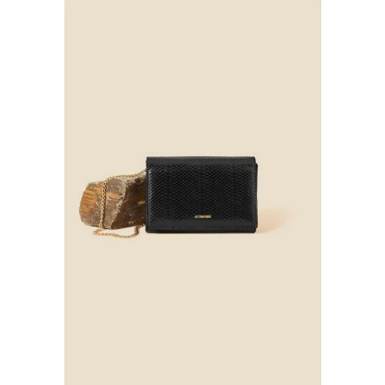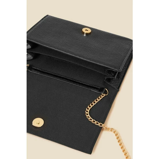 It’s the black mini bag that everyone needs for nights out on the town and dinner dates. Designed with a classically chic faux reptile finish, this bag features a gold-tone chain strap to throw over the shoulder when your favourite song comes on. Fastens with a magnetic popper to the fold over flap.