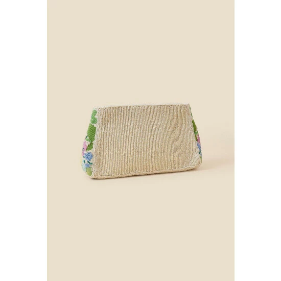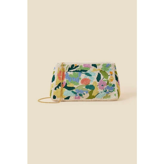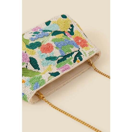 Embellished by hand, this cross-body bag features glamorous and vibrant floral decoration in the form of glistening beads. This occasion-ready style features a zip closure to the top, with an option gold chain strap.