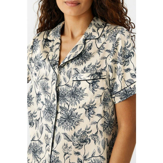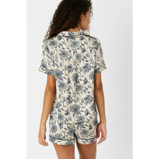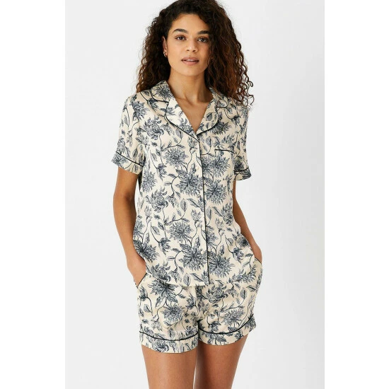 It’s the small things. Ideal for both your morning coffee fix and evening movies, treat yourself to these luxe pyjamas. Designed in soft satin with a floral print, this set includes a button through shirt and shorts, finished with traditional piping.