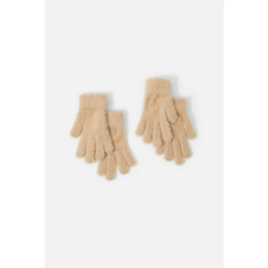 A heavenly pairing: these gloves combine the super-soft with the super-stretchy. Designed in fluffy fabric with a neutral camel hue, keep them ready in your tote bag for when the temperature drops. Two pairs included.