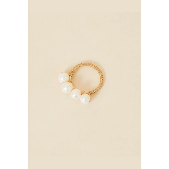 Wound with a cluster of fresh water pearls, this ring slips on the finger perfectly with a simple gold-tone band – ideal for your every day stack.