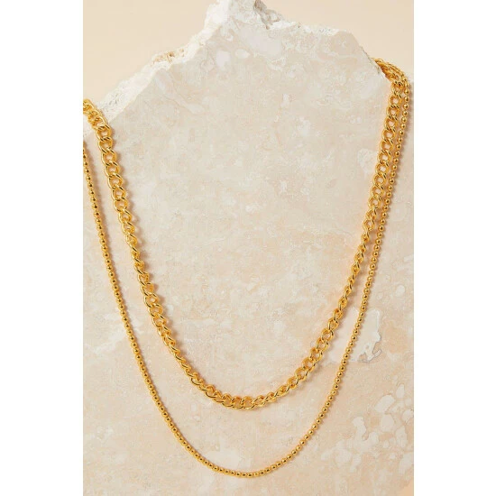 Spent too long deciding on the outfit? Left with little time to accessorise? Keep this effortless necklace in your jewellery collection for just those moments. Designed in gold-plated metal, it features a layered profile with a shorter curb chain and longer ball chain. Styles beautifully with plunge necklines.