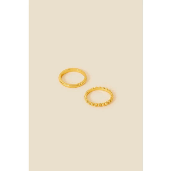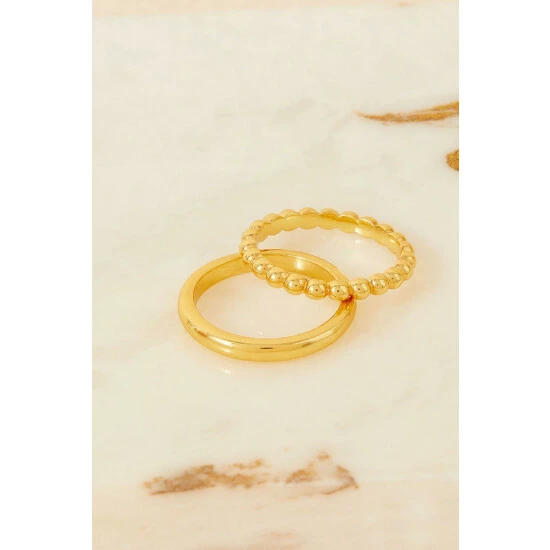 Beautifully fine, this delicate ring duo features a bobbled design alongside a plain band. Both crafted in gold-plated metal, they’re super shiny for a luxe finish to your day-to-night looks.