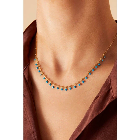 Crafted in gold-plated metal, this necklace features a collection of disc charms that are coated in a vibrant azure enamel for a splash of colour.