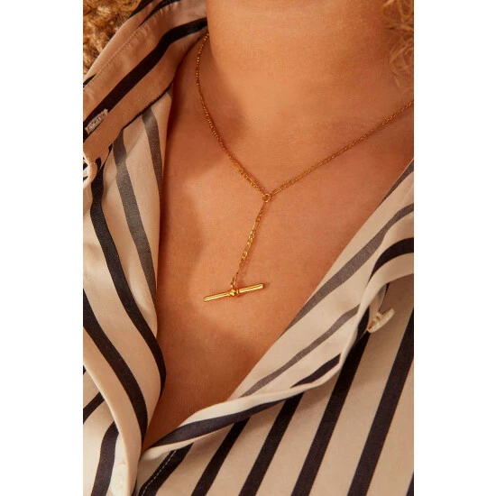 Add some vintage appeal to your outfit with this gold-plated necklace, featuring a T-bar pendant on a slim Y-chain. Fastens with a lobster clasp and extender.