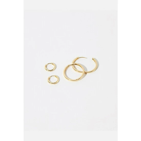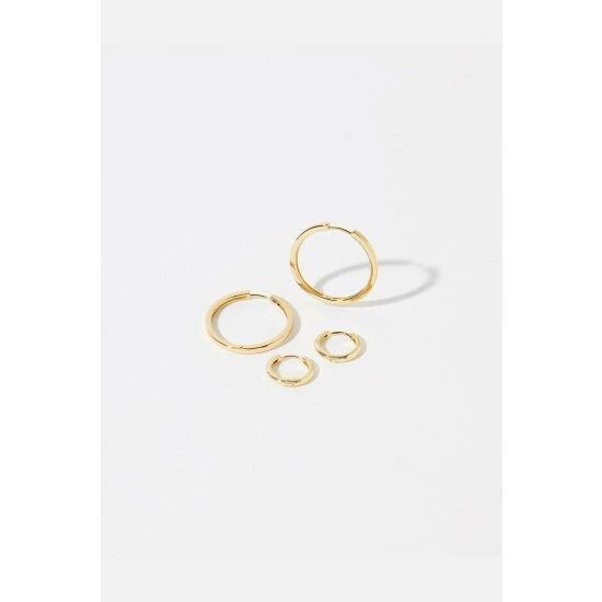 It’s a well-known fact that a great set of hoops will complete any look. This set of two pairs includes a large and a small, both plated in yellow gold.