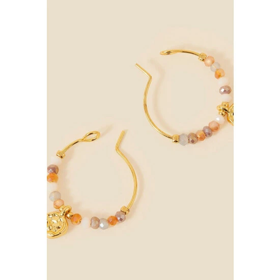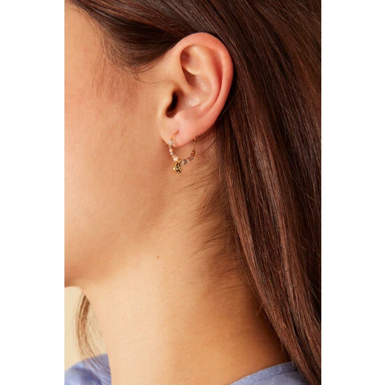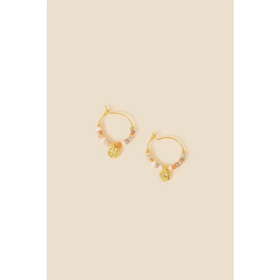 Amongst pink, lilac and blue beads sits molten details for an organic take on these charm earrings. Adding a luxurious touch, the rest of the hoops display the gold-plated base, adding a shiny finish to your outfit. Matching bracelet and necklace available