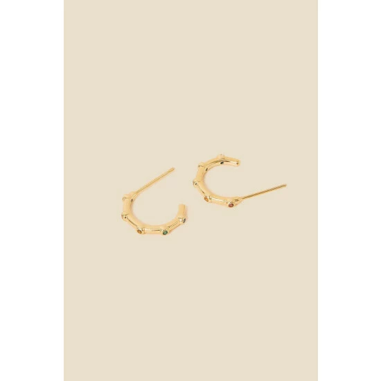The rainbow touch: prepare to be greeted by petite, multicoloured gems amongst the stationed insets on these hoops. Designed in gold-plated metal, they’re the perfect size for every day!