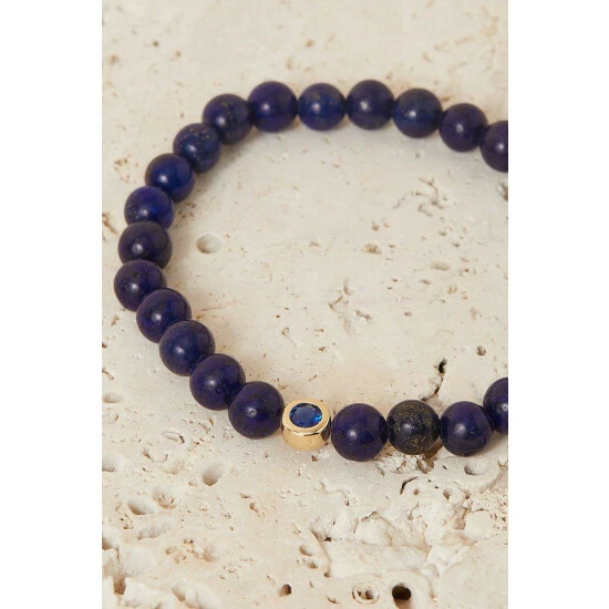 Spiritual styles: add a pop of colour with this pendant beaded bracelet. Finished with a sparkly blue diamante pendant and crafted in real lapis, symbolising wisdom and truth.