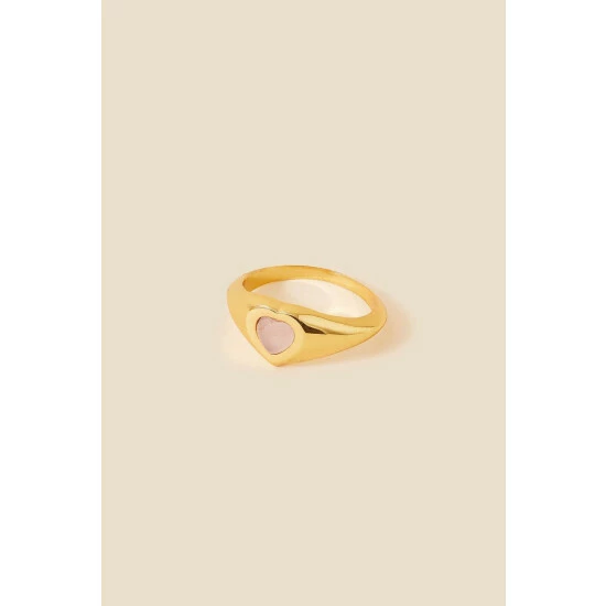 Rose quartz is found within this signet ring, creating a befitting design for date nights. Designed in gold-plated metal, the use of rose quartz is said to symbolise unconditional love, emotional healing and compassion.