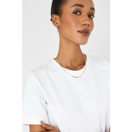 Wear this simple snake chain under an open-collared shirt to add a chic, on-trend twist. Designed in gold-plated metal, it fastens with a lobster clasp and extender.