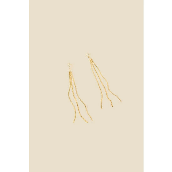 Destined to be seen, these earrings are the perfect option to elevate a plain LBD or monochrome outfit. Crafted in gold-plated metal, they feature a sparkly-centred star stud and three drops of chain that falls below.
