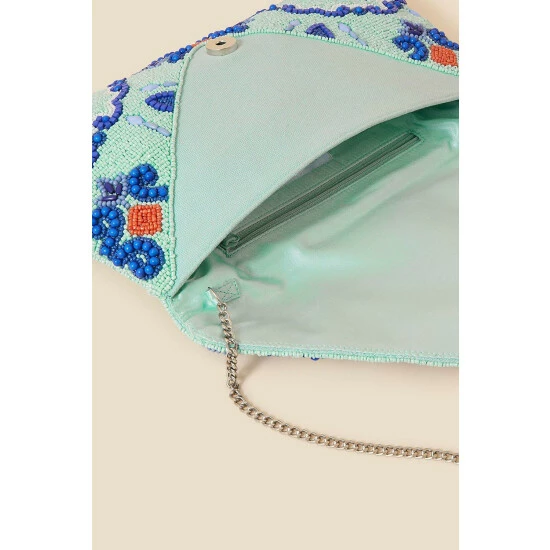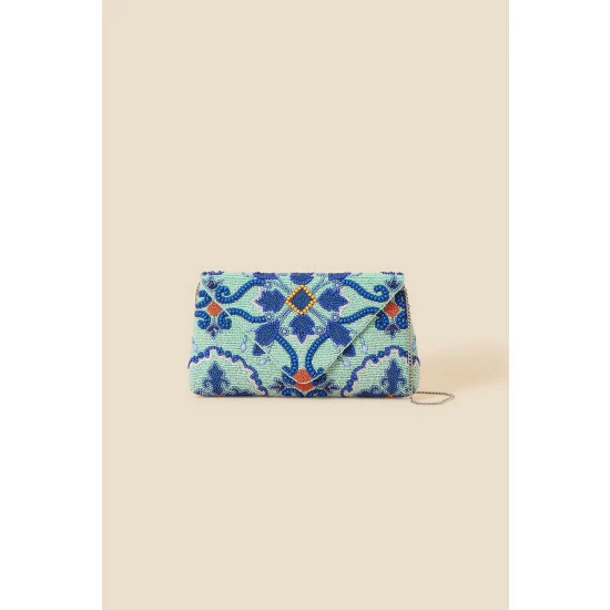 Inspired by organic Mediterranean tiles, this bag will leave you reminiscing of sunny holidays dining along the coast. Made for evenings, it features hand-embellishments throughout the envelope profile, with a chain strap you can style over the shoulder for hands-free moments. Fastens with a magnetic press-stud.