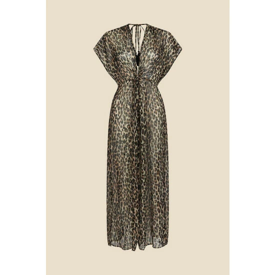 Beach glamour is achieved oh-so-easily when you throw this kaftan over your swimsuit. Designed in lightweight chiffon, it’s a statement piece thanks to the all-over leopard print and maxi length, finished with a v-neck and flatteringly cinched silhouette.