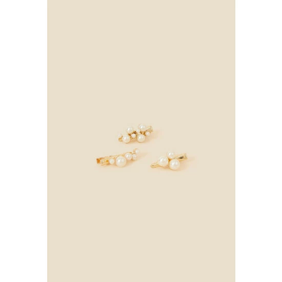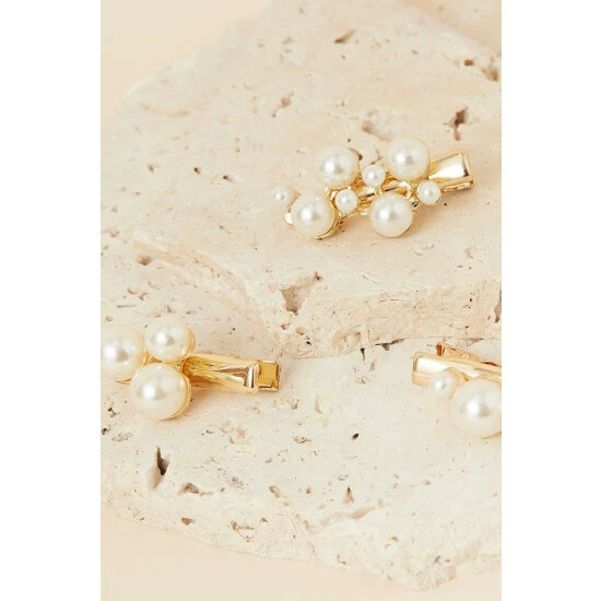 Crafted on mini gold salon clips, this set is designed with clusters of pearls that’ll add a pretty touch to any hairstyle. Simply slide them in to keep loose locks in place and you’re good to go! Three included.