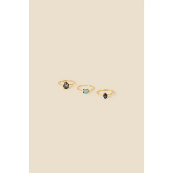 Stack ’em up: this set boasts the best of both worlds, including three different rings that can be worn individually or stacked and mix-&-matched! Designed on gold-tone metal bands, they each feature a unique blue gemstone to the centre for a twinkly touch.
