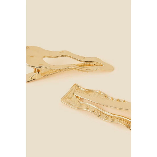 Opt for something different from your usual salon clip with this pair. Crafted in gold-tone metal, each clip features a molten design for a contemporary touch, simply slide them into your chosen style for a contemporary twist. Two included.