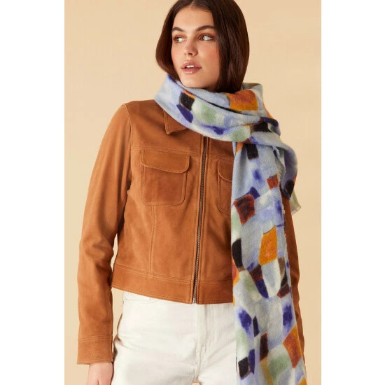 Flush a whirl of colours and abstract designs into your cold-weather looks with this scarf tucked into your coat neck. Designed in soft and cosy fabric, it’s finished with a raw hem and oversized fit.