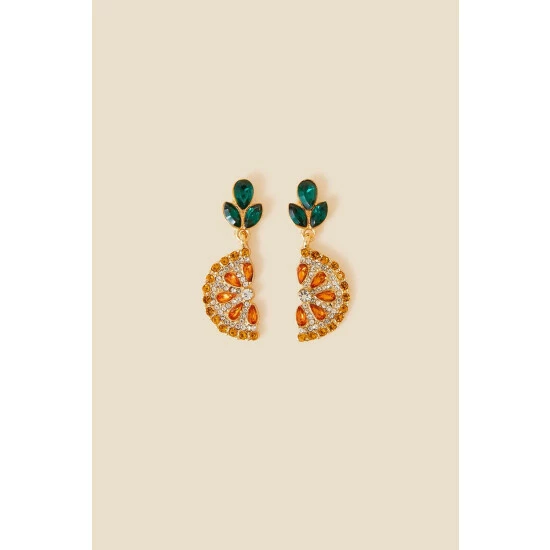 A touch of sweetness: encrusted with sparkling diamantes, these earrings are crafted with the cutest orange slice design for those who prefer things a bit more fruity.