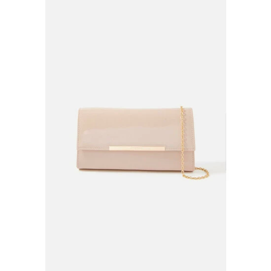 The perfect companion for those late dinner dates and special occasions. Its glossy patent exterior and fine gold metal strap work together to create a high-class accessory that’ll go with just-about-anything! Style it over the shoulder or tuck the strap in for a handheld option. Available in black, nude and navy.