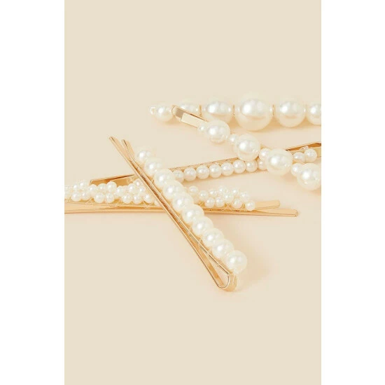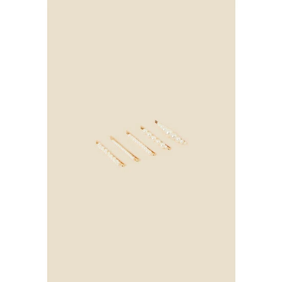 Keep loose locks out of the way with this set, featuring pretty pearl detailing on a gold-tone hair slide. Five included.