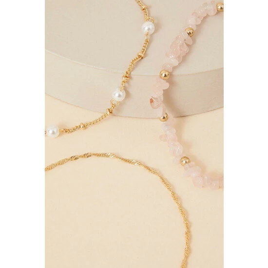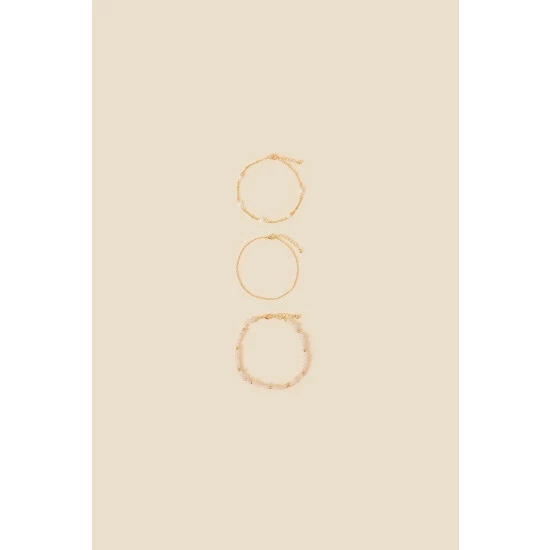 Up your flip flop game with this anklet set, crafted in gold-tone metal. Each piece is uniquely designed, boasting pearls, beads, and raw cut stones. Three included.