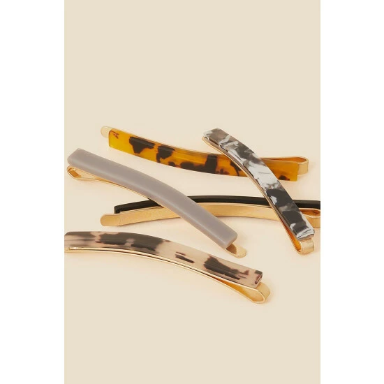 From keeping your hair out of your eyes, to securing your bun, these hair slides are sure to add a chic touch to your style. Each one features a resin design atop a gold slide, from matte grey to tortoiseshell. Five included.
