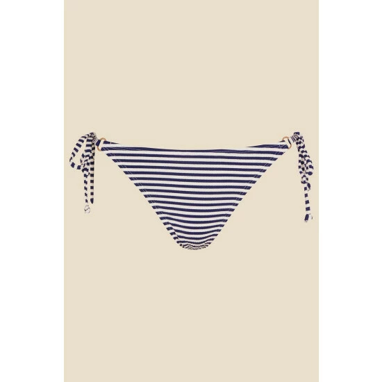 Perfect for dipping in and out of the pool, this bikini features nautical stripes over a triangle cut. Adjustable for your comfort, it ties at the neck and back.