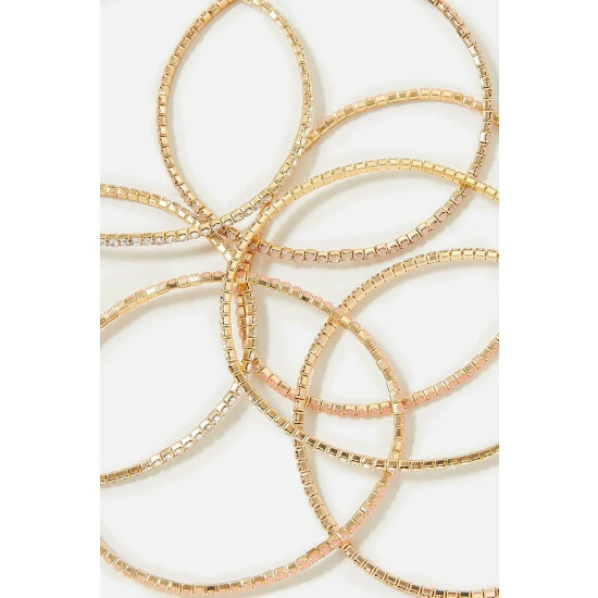Introduce something sparkly to your accessory collection with these cupchain bracelets. Included are six elasticated designs – some have pink stones, the others dazzling crystals.
