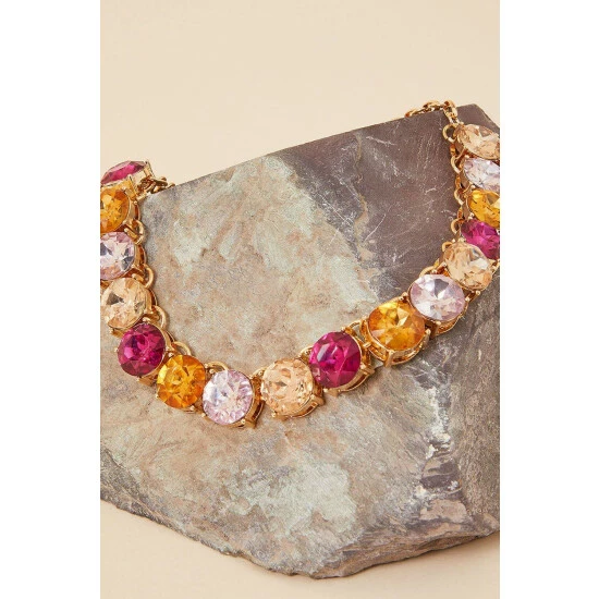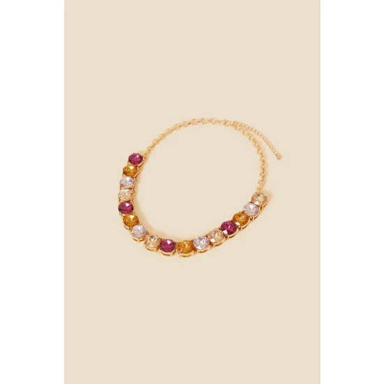 Built with statement stones, this necklace exudes elegance with its amber and berry hues for a touch of warmth. Style it with a plain blouse to instantly take it to the next level.