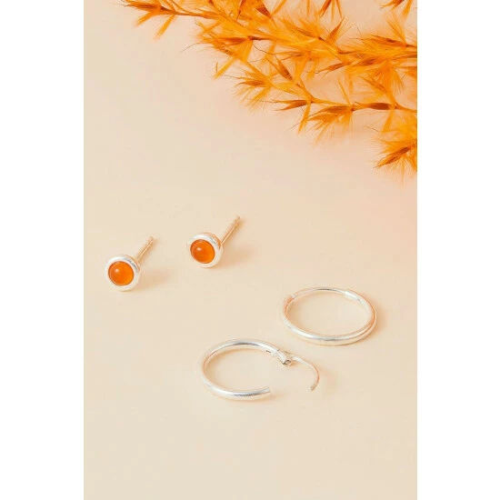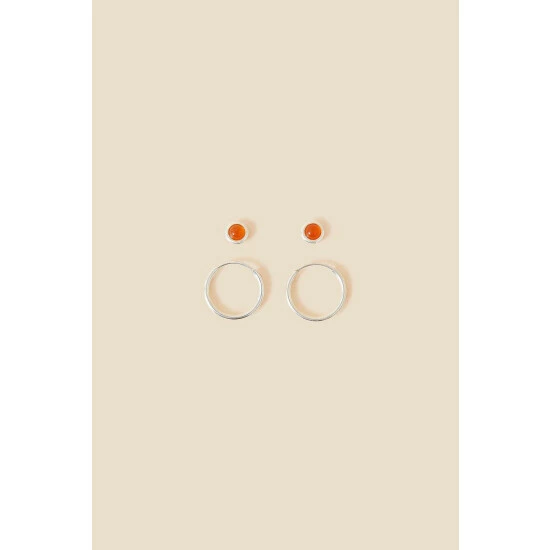 A stud and a hoop is all you need, so opt for this earring set for a pop of colour and spirituality in your every day accessories. The hoops feature an infinity closure, whilst the stud earrings feature carnelian stones, helping with motivation and energy.