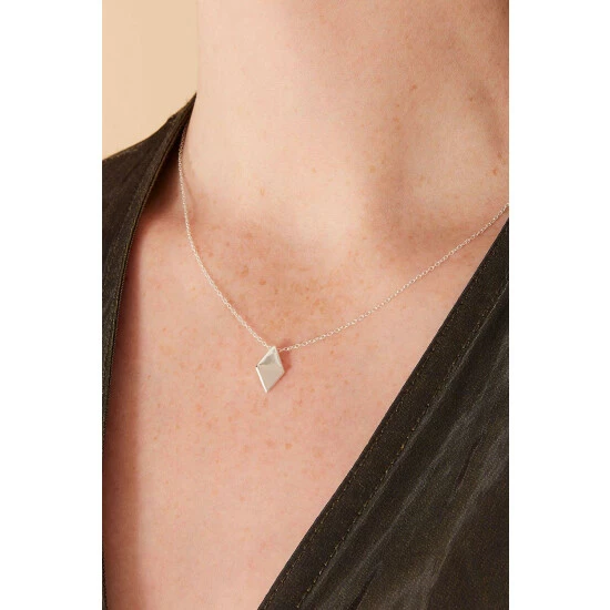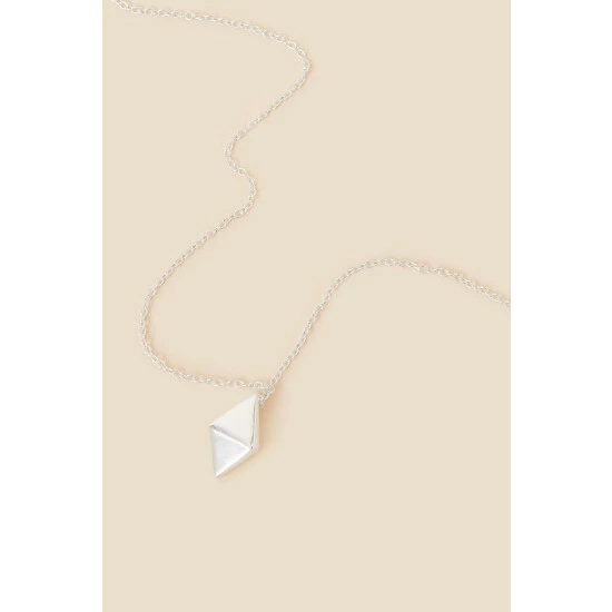 A simple piece for every day, this sterling silver necklace features a solid diamond pendant than hangs on a fine chain. The pendant features geometric indents for a cubist touch, adding a contemporary finish to your look.