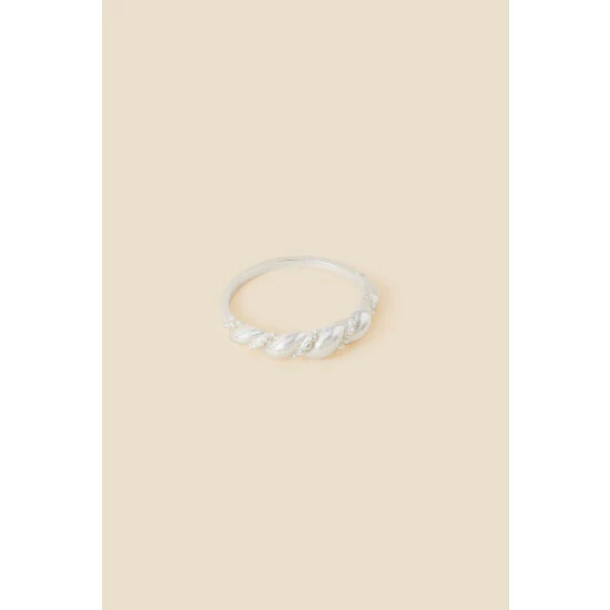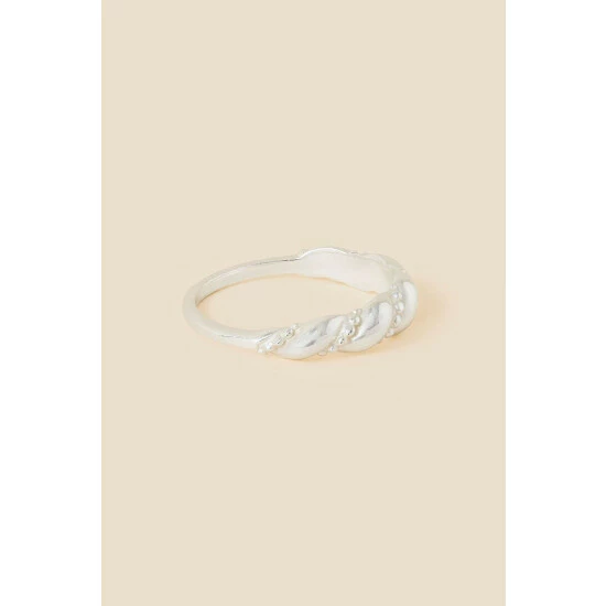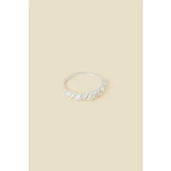 Infuse subtle texture into your every day ring stack with this piece. It’s designed in sterling silver and finished with croissant-inspired twists, stationed with bobbles.