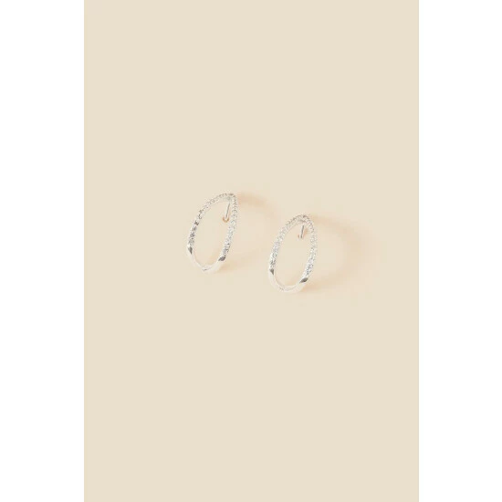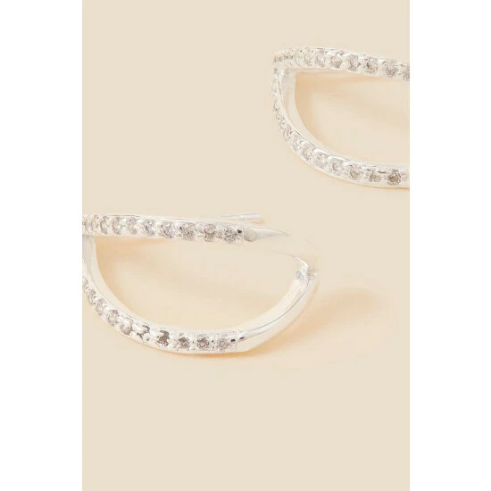 A unique and opulent twist on a classic, these sterling silver earrings are designed in a v-shape hoop profile, encrusted with sparkling diamantés throughout. The curved finished hugs the lobe, created a put together look for date nights and parties.