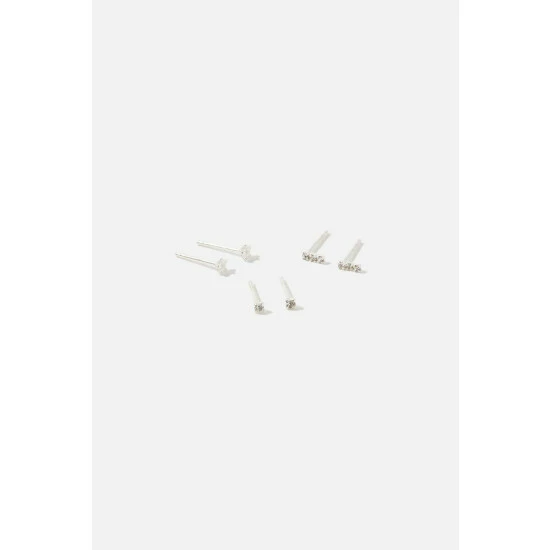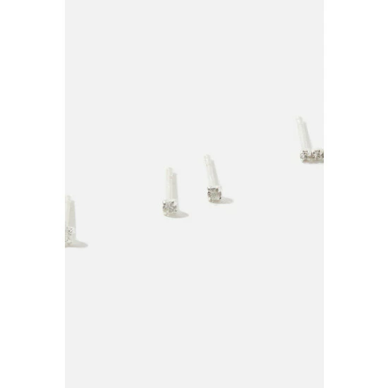 Guaranteed to sparkle under daylight, moonlight and disco lights, these earrings are designed in sterling silver with facet crystals. Includes three pairs.