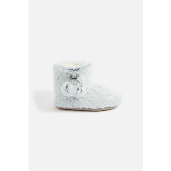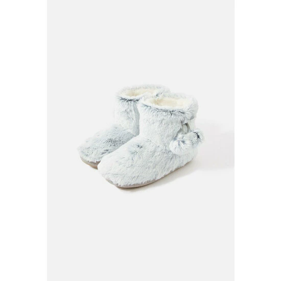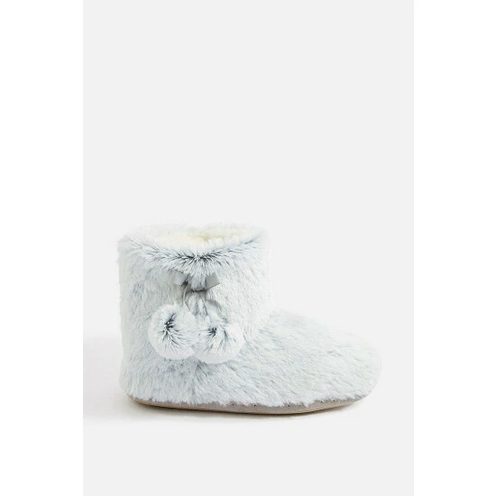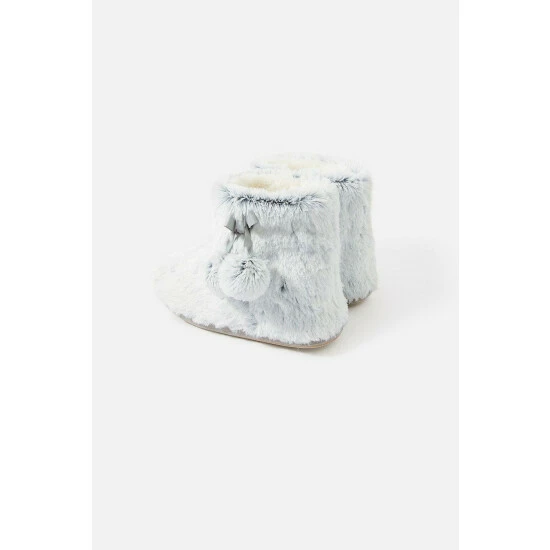 The cosy chronicles: keeping your feet warm and your loungewear looking luxe. This pretty pair has a boot silhouette with pom-pom detailing. Perfect for nights in.